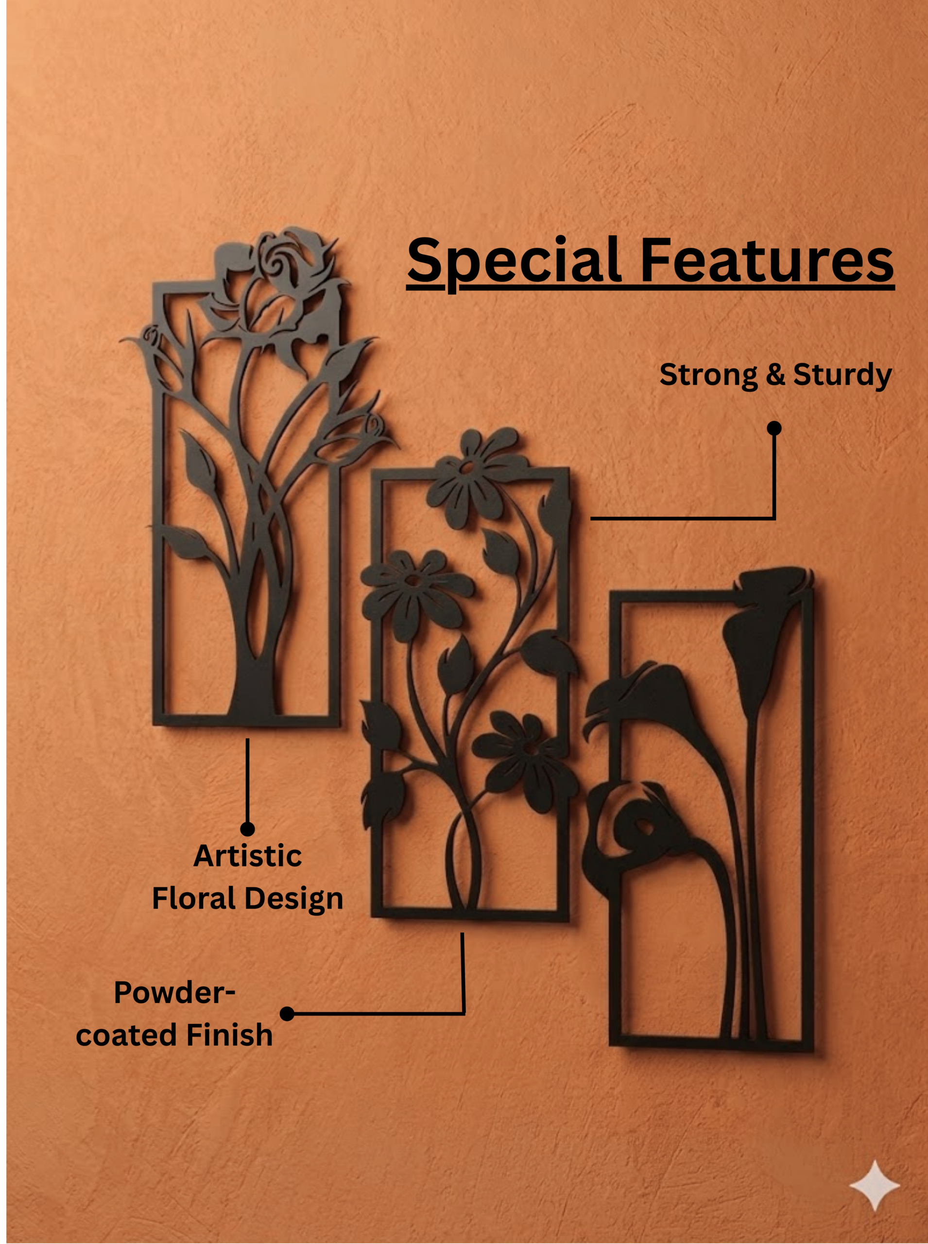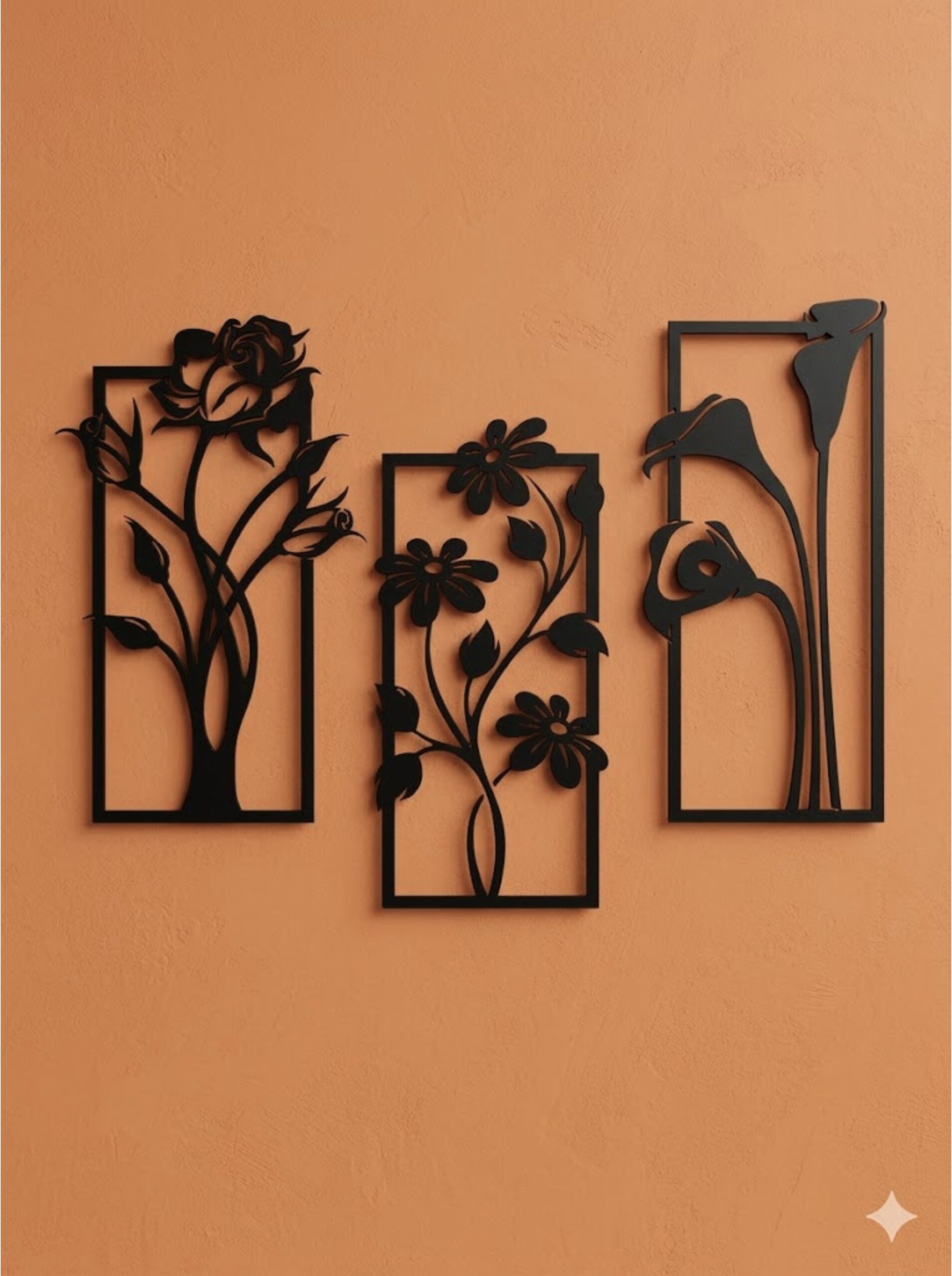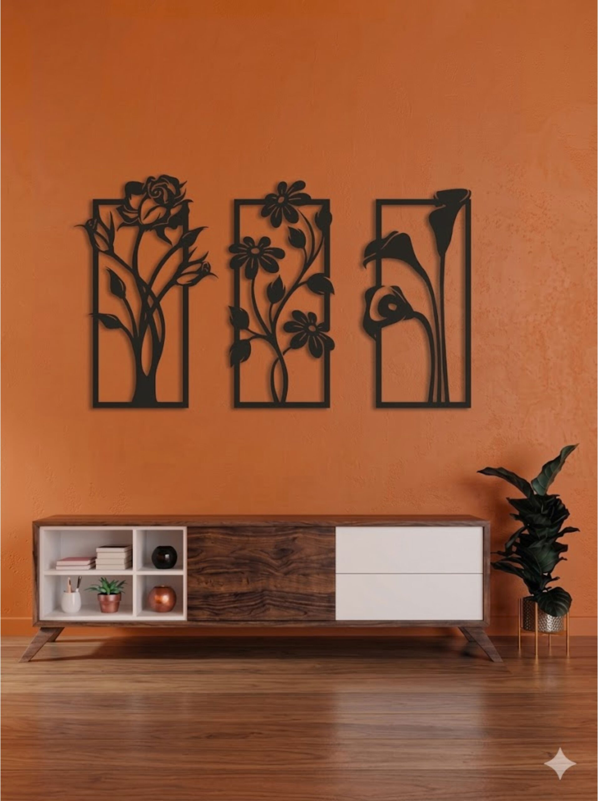 Elevate your walls with the Trendy Floral 3-Panel Metal Wall Art, a stunning 3D décor piece that brings elegance and life to any room. Crafted from premium metal, each panel showcases intricately detailed floral patterns, creating depth, texture, and a captivating visual effect that draws the eye.