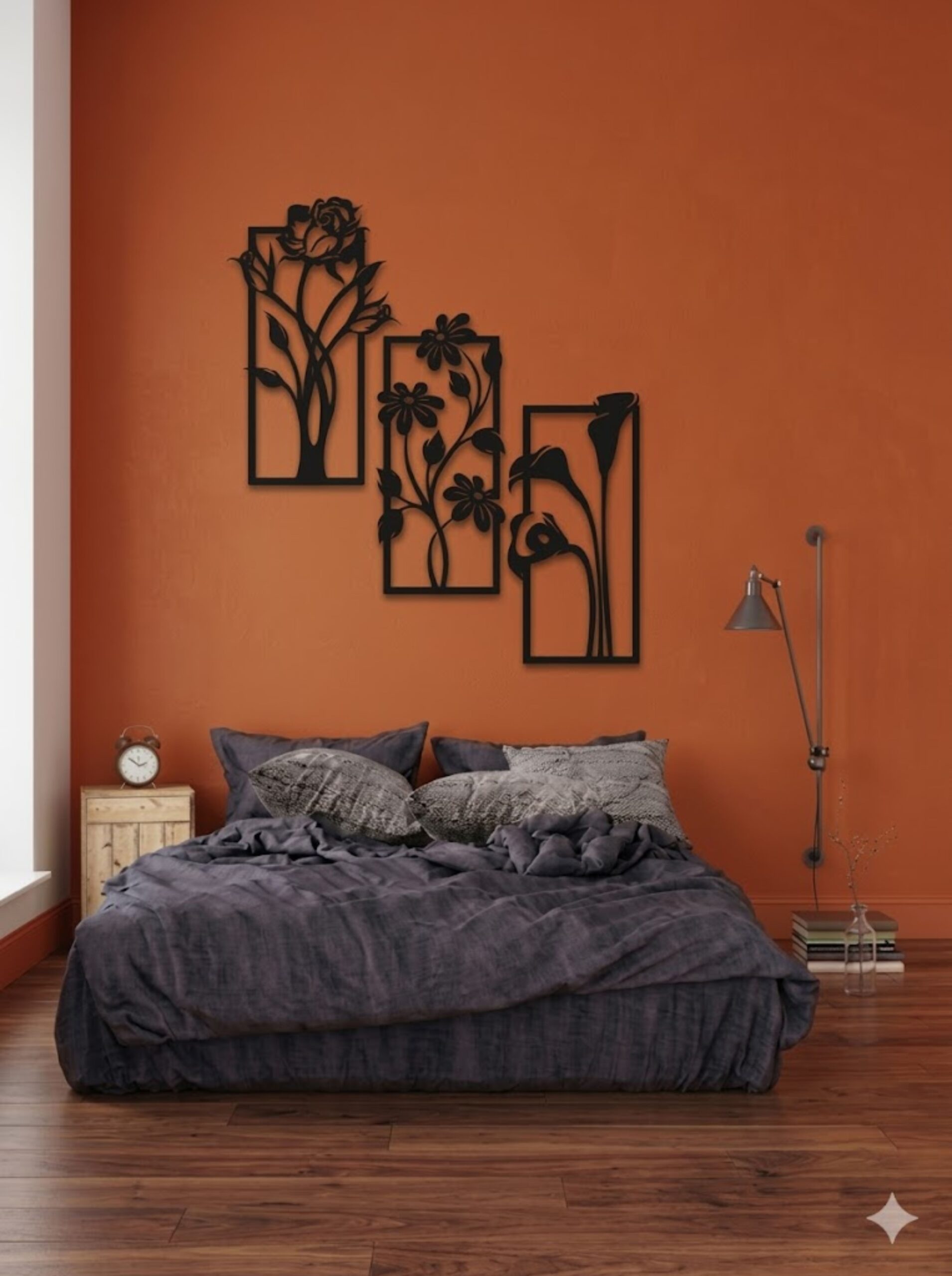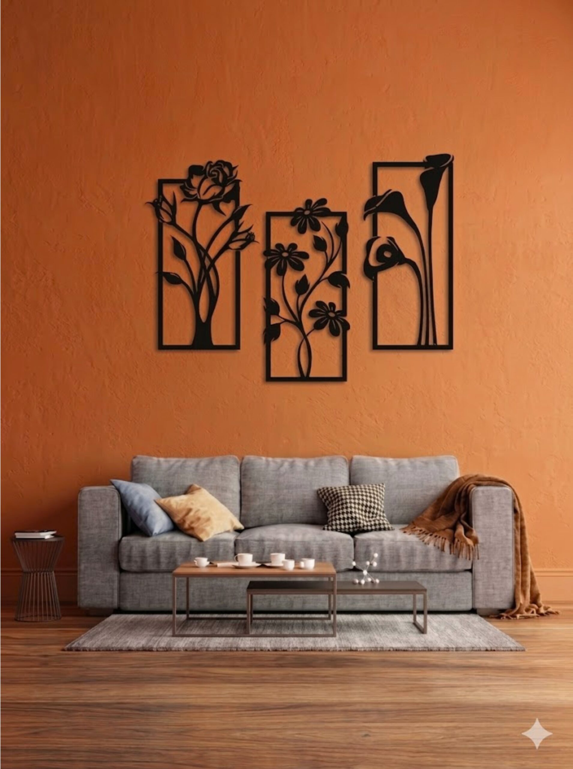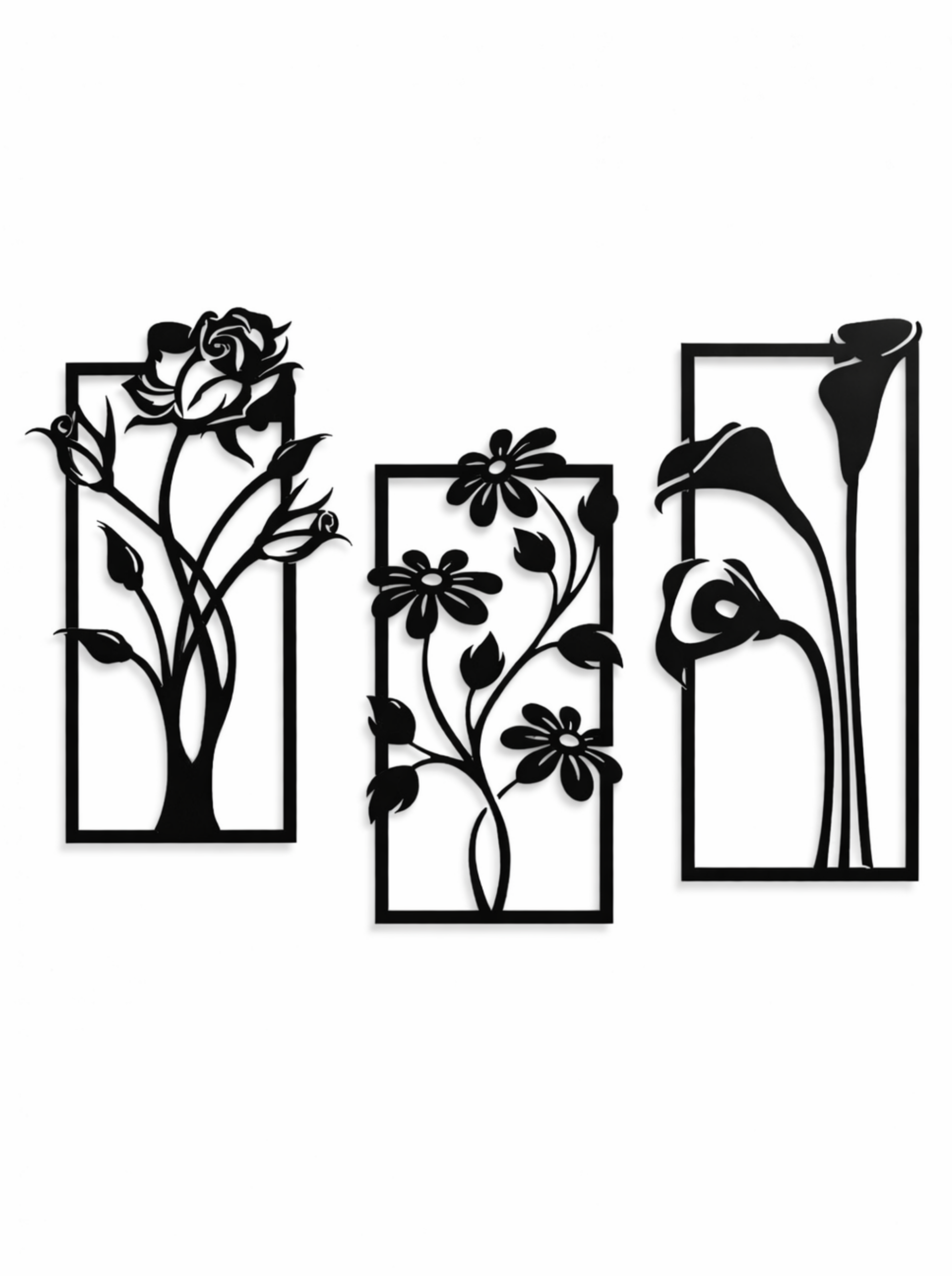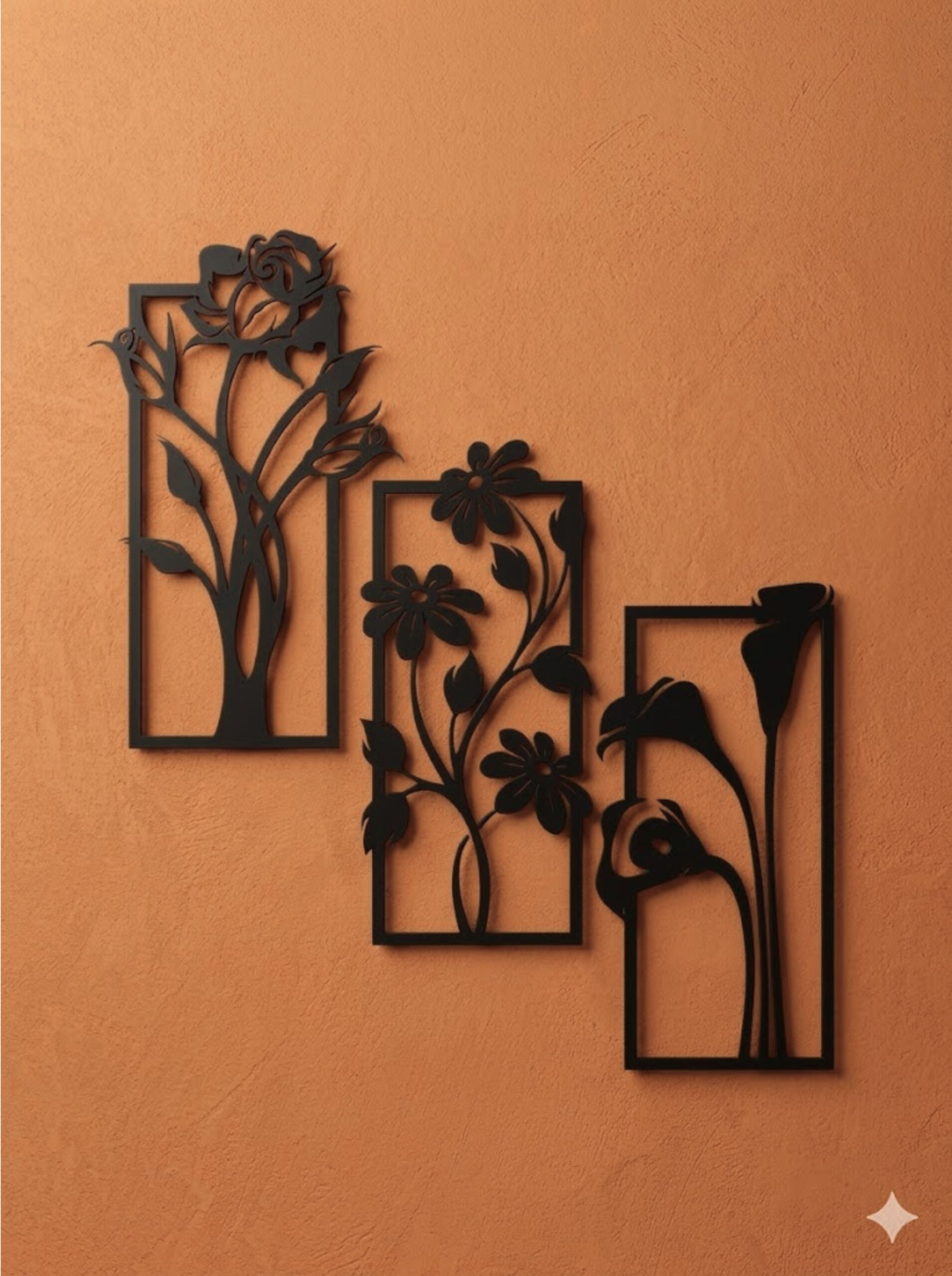 Elevate your walls with the Trendy Floral 3-Panel Metal Wall Art, a stunning 3D décor piece that brings elegance and life to any room. Crafted from premium metal, each panel showcases intricately detailed floral patterns, creating depth, texture, and a captivating visual effect that draws the eye.