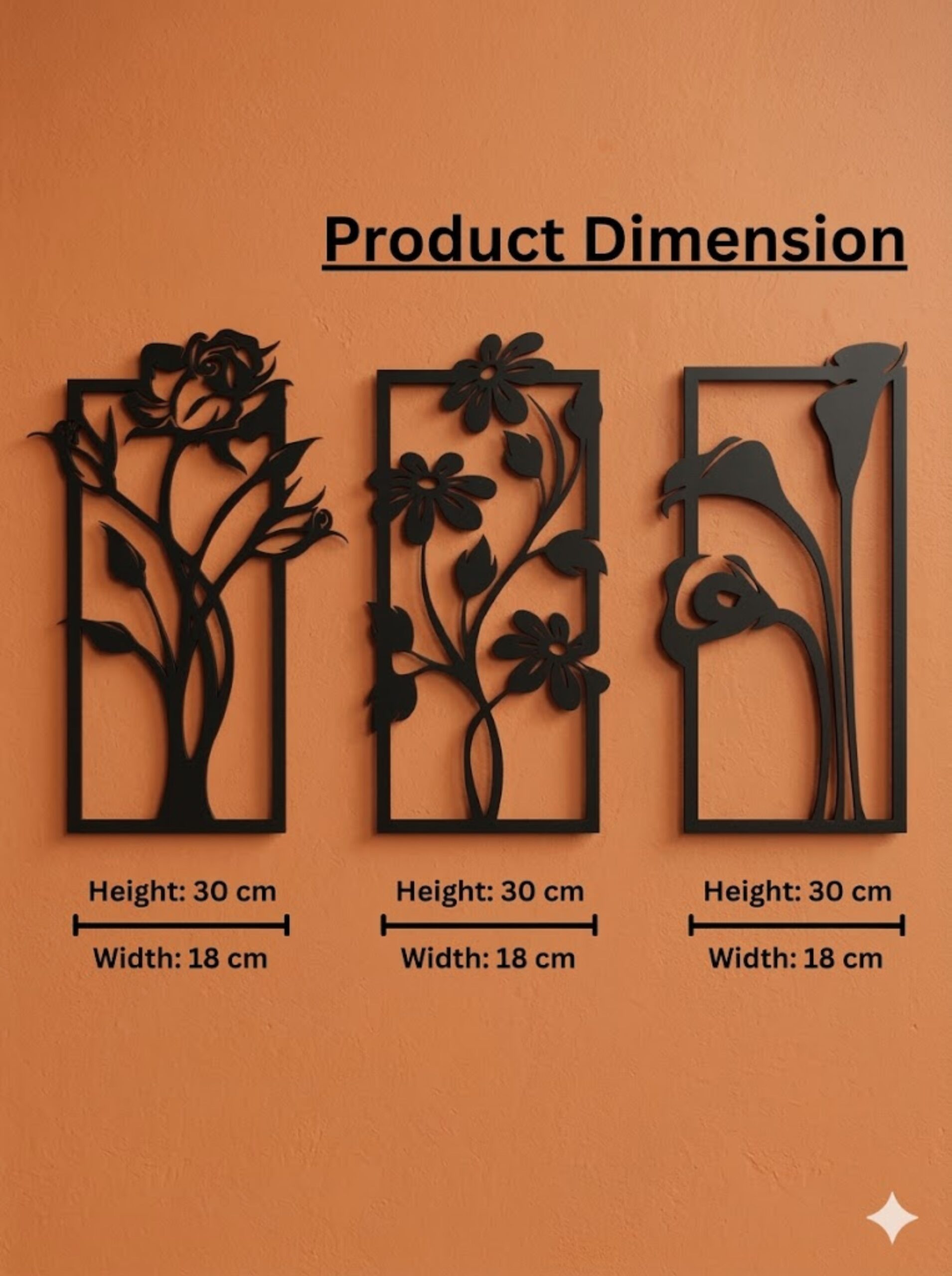 Intricate 3D Floral Design – Each panel features finely detailed metal flowers, creating depth, texture, and a visually captivating 3D effect that elevates any wall.