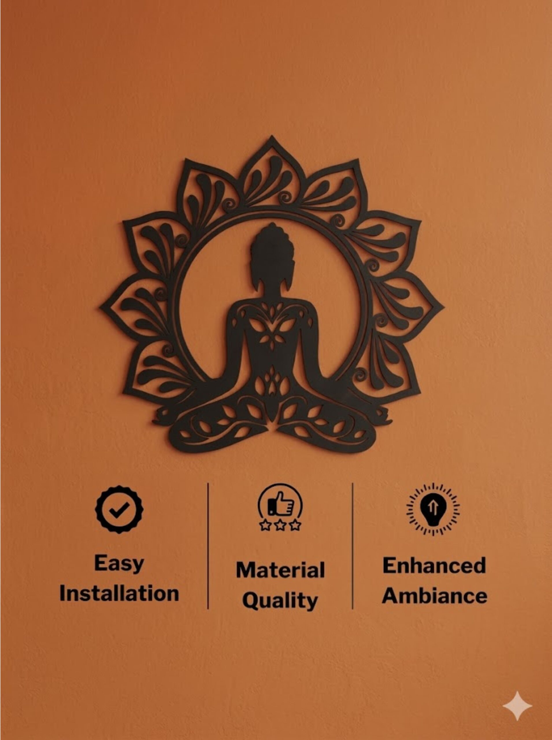 Zen-Inspired Décor: Brings peace, mindfulness, and spiritual calm to meditation rooms, yoga spaces, or personal sanctuaries.