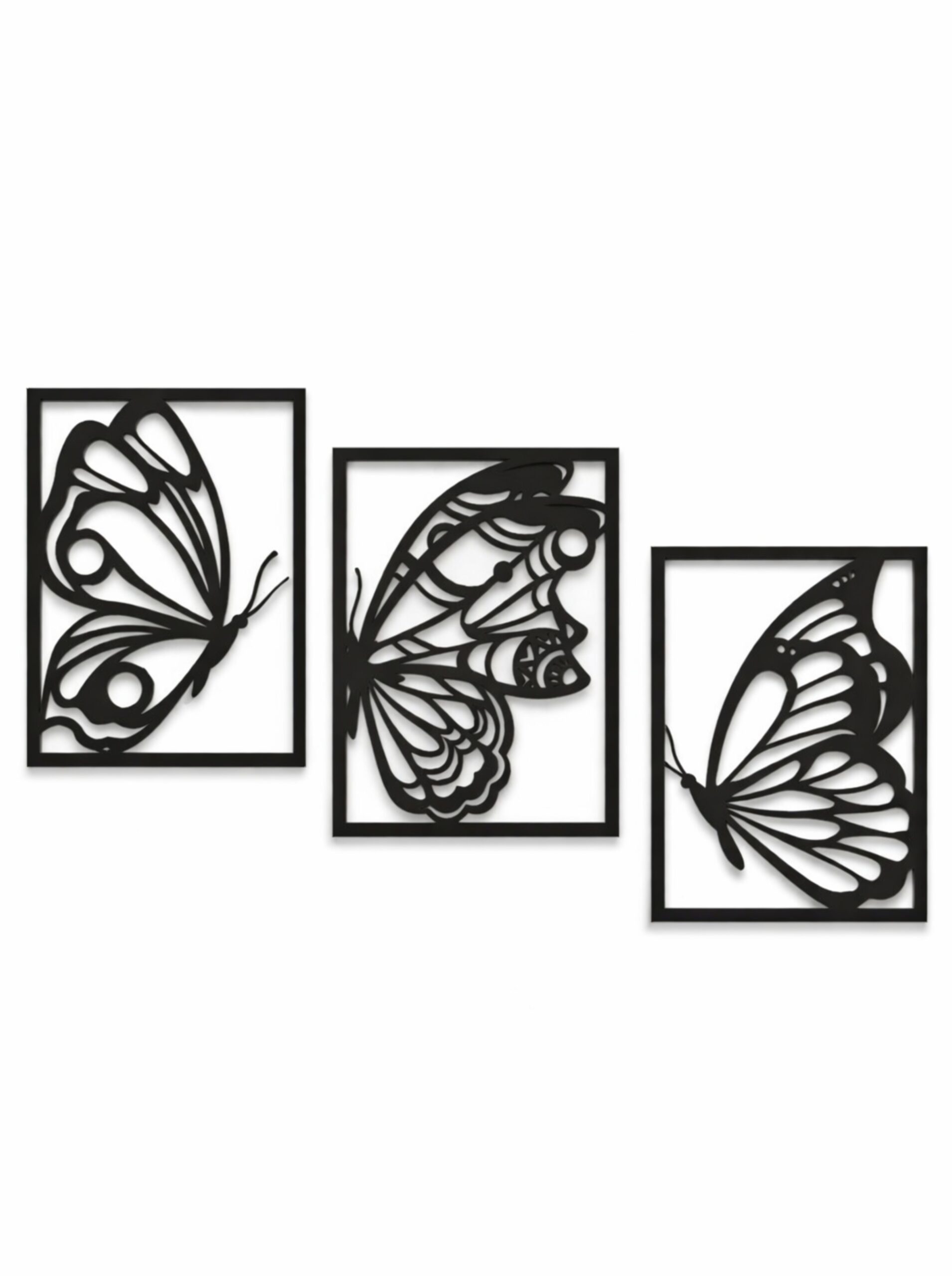 Elegant Triptych Design: Set of 3 beautifully crafted panels featuring intricate butterfly patterns that create a cohesive and eye-catching wall display.