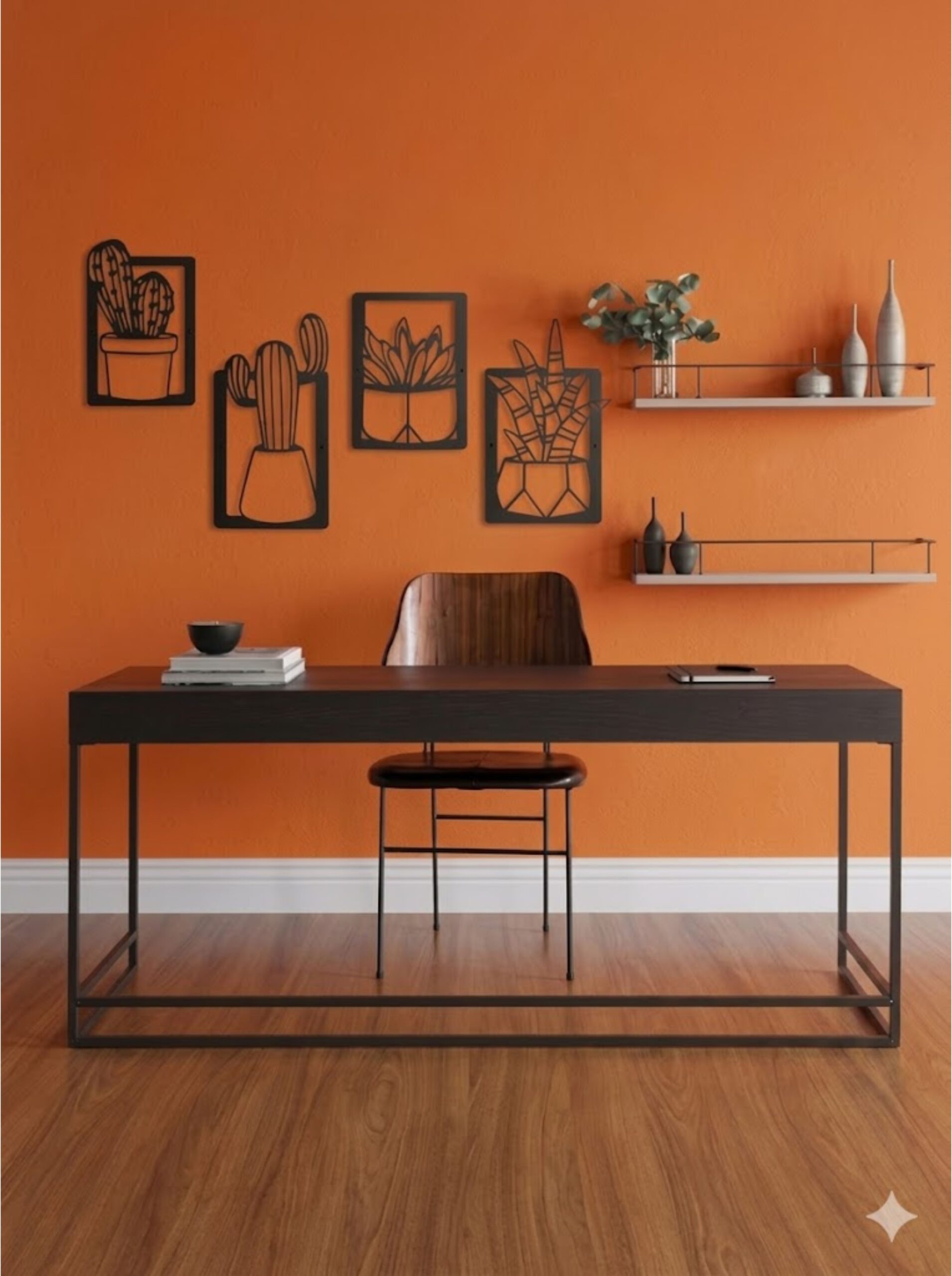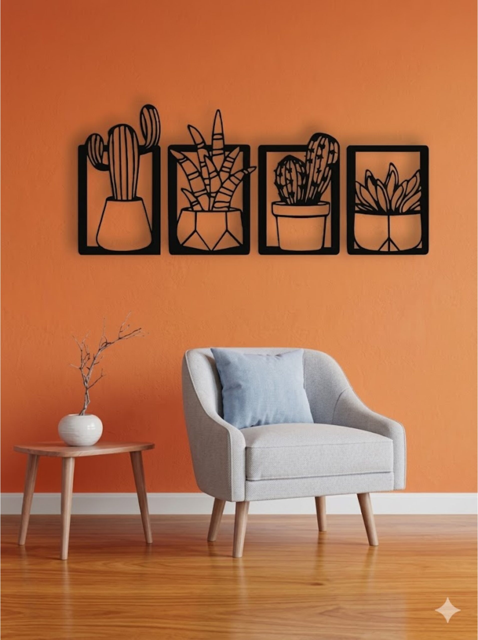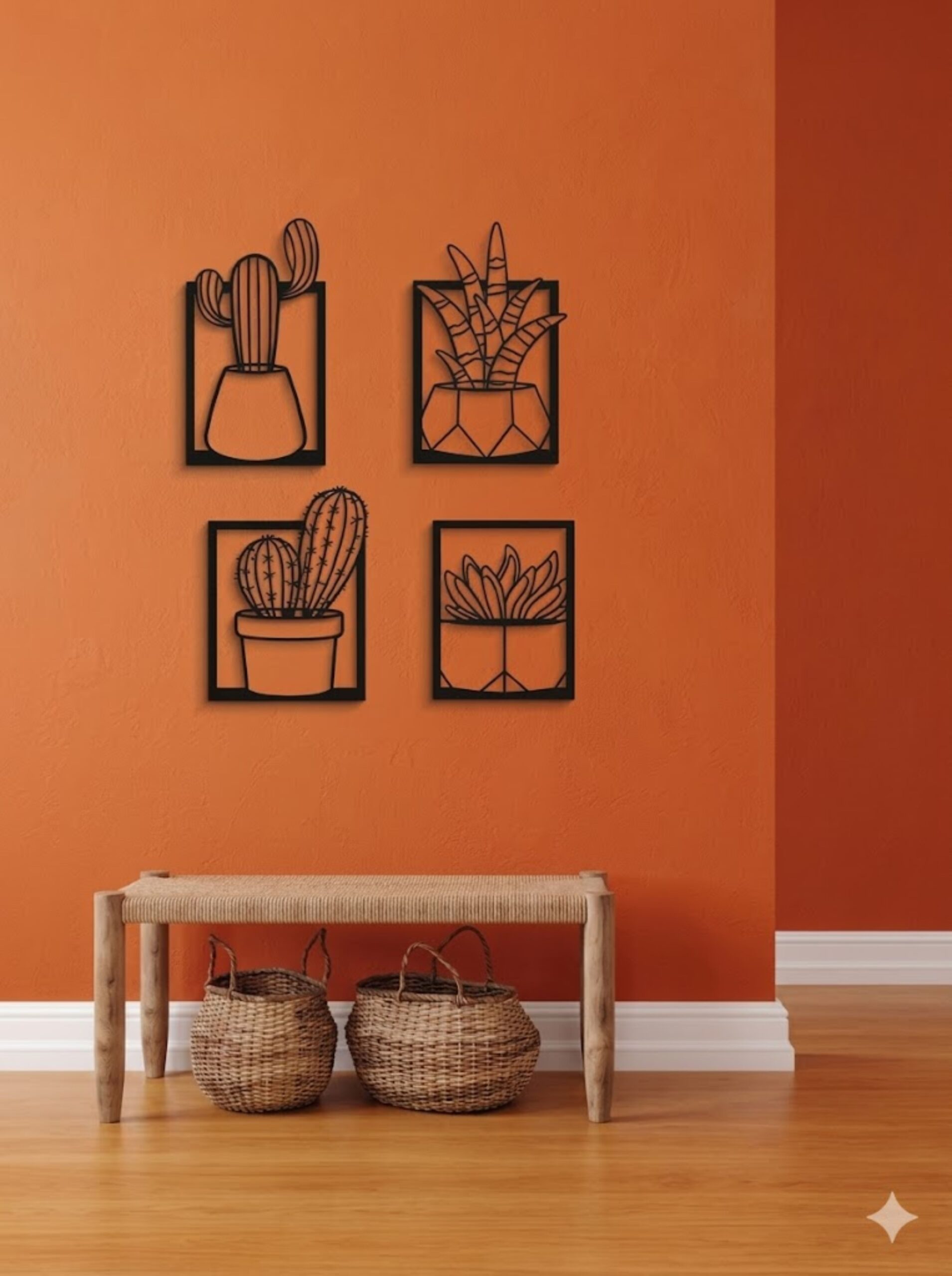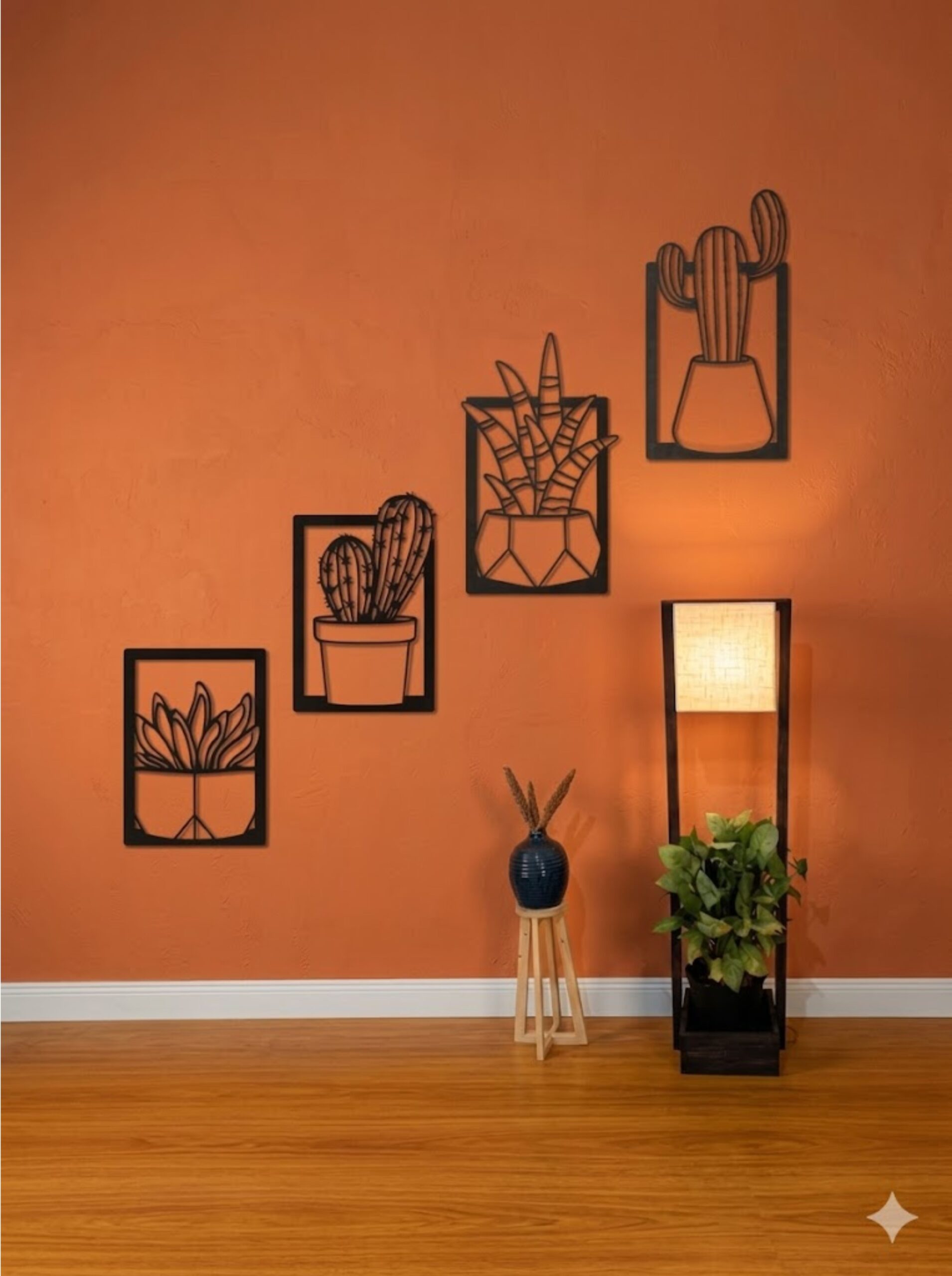 Bring a perfect blend of modern design and natural elegance into your space with this Cactus 4-Panel Metal Wall Art Frame. Expertly crafted from premium-quality metal, each panel features a sleek black matte finish enhanced with a subtle 3D effect, creating striking depth and dynamic shadows that shift beautifully with changing light throughout the day.