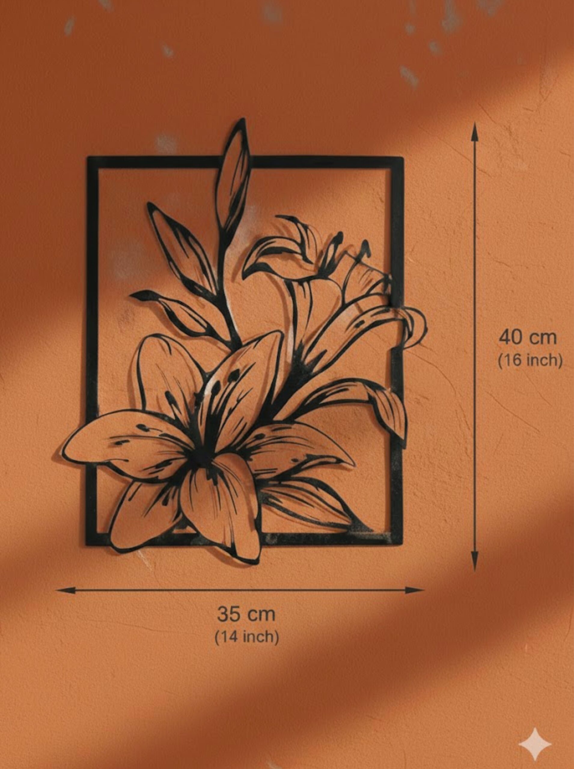 Enhance your living or work space with the Elegant Lily Floral Metal Wall Art – a striking 3D décor piece. Crafted from premium metal, this artwork showcases beautifully sculpted lily flowers with intricate detailing, creating a lifelike and dimensional effect on your walls. Its modern design blends seamlessly with a variety of interior styles — from contemporary and minimalist to classic and traditional.
