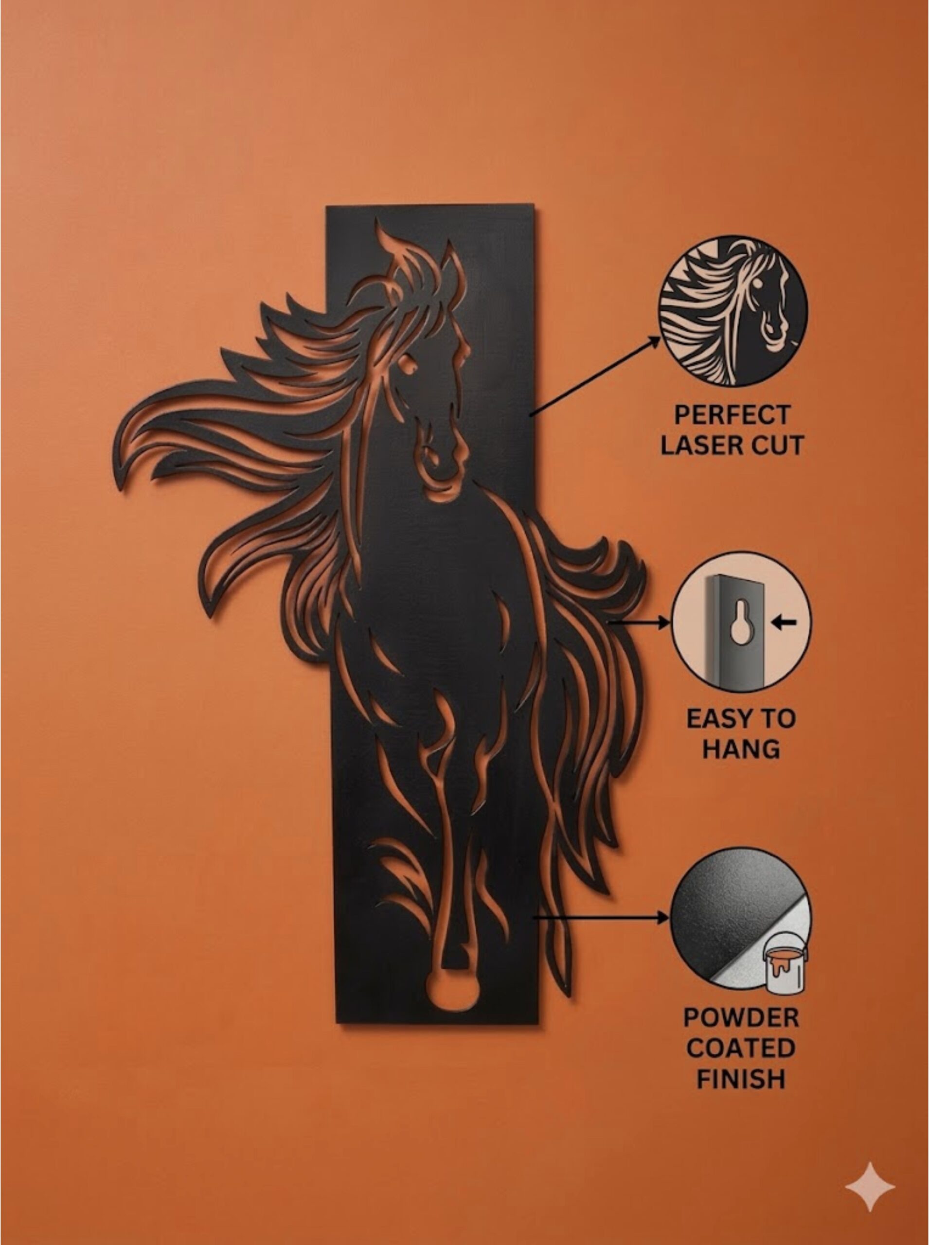 Perfect for living rooms, bedrooms, offices, hallways, studios, or entryways, this metal wall art blends seamlessly with both modern and traditional interiors. Whether you’re decorating your home, upgrading your workspace, or looking for a unique gift for horse lovers or art enthusiasts, this piece delivers a stylish and meaningful décor statement.