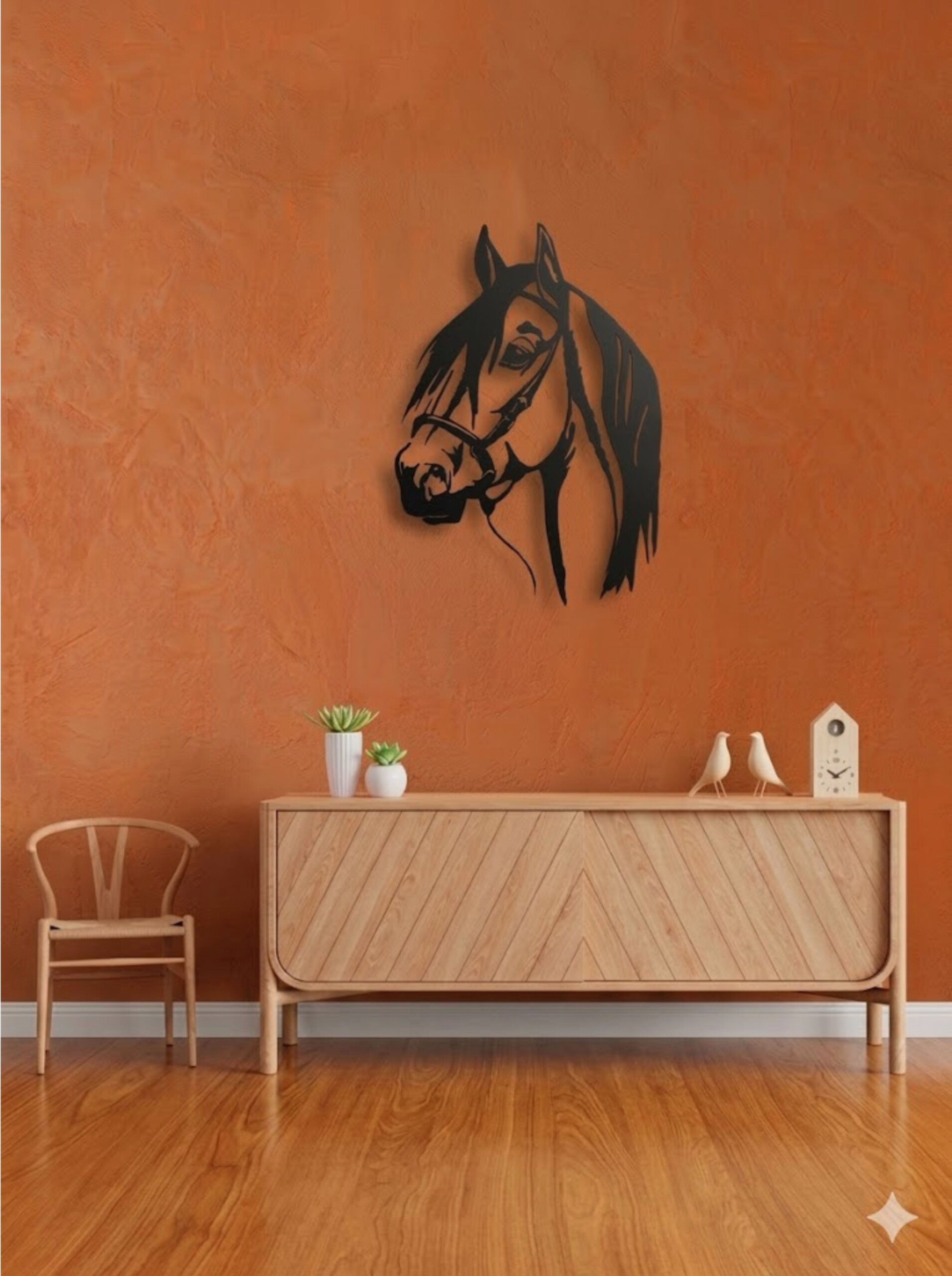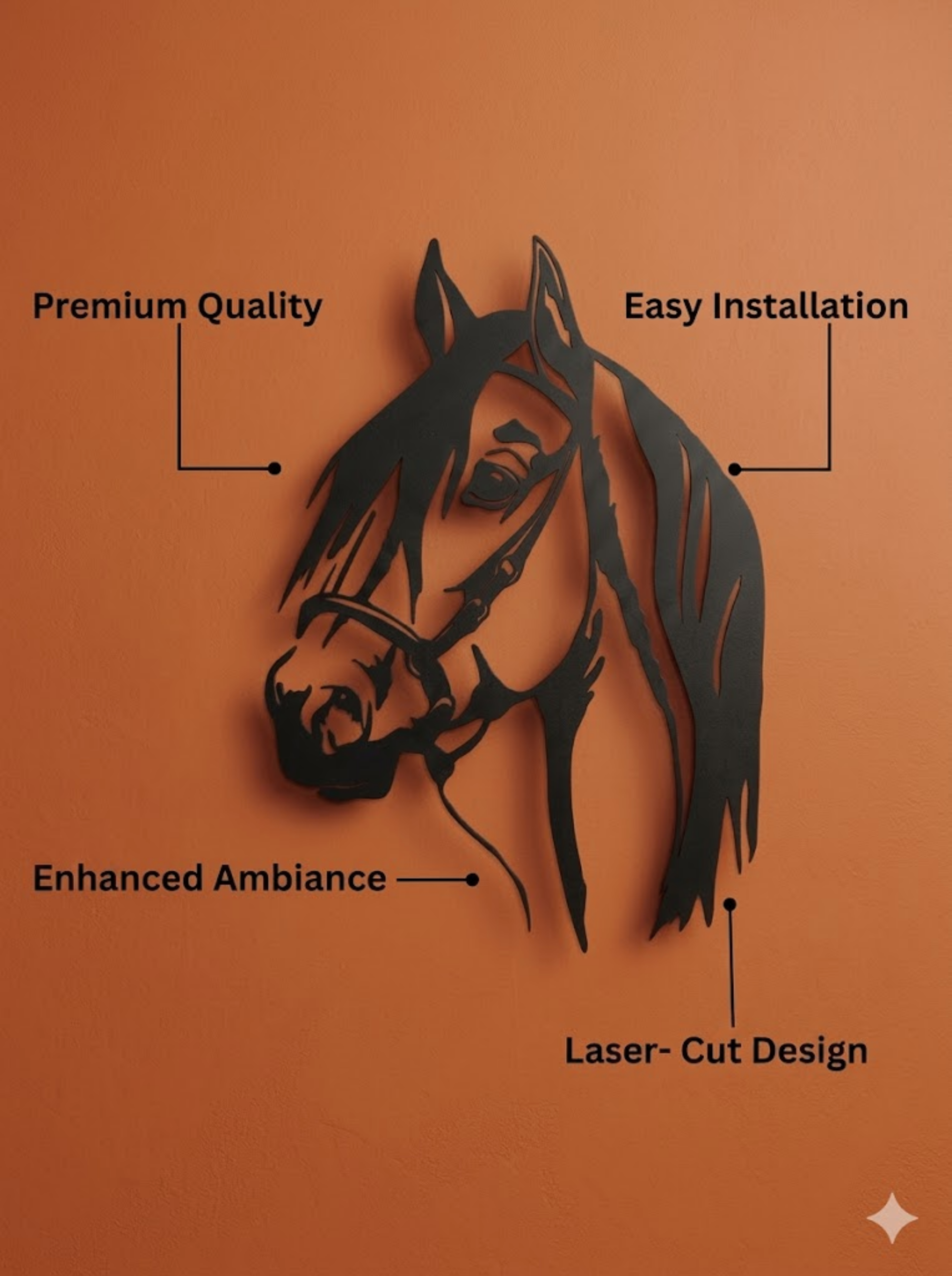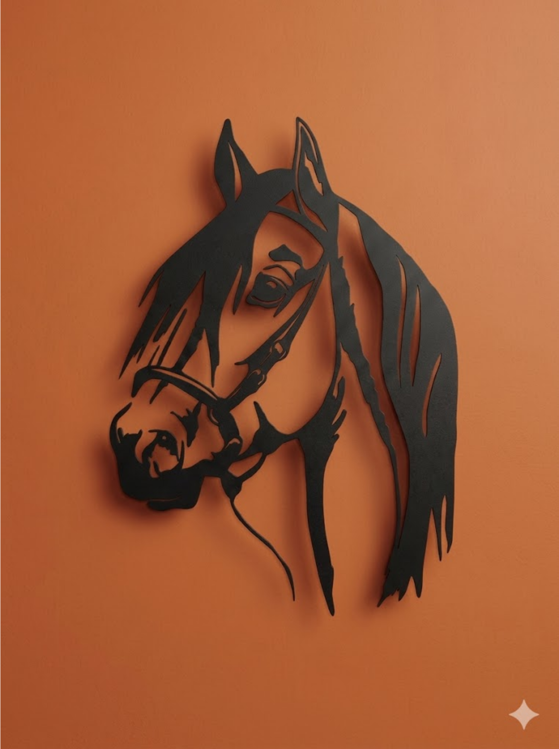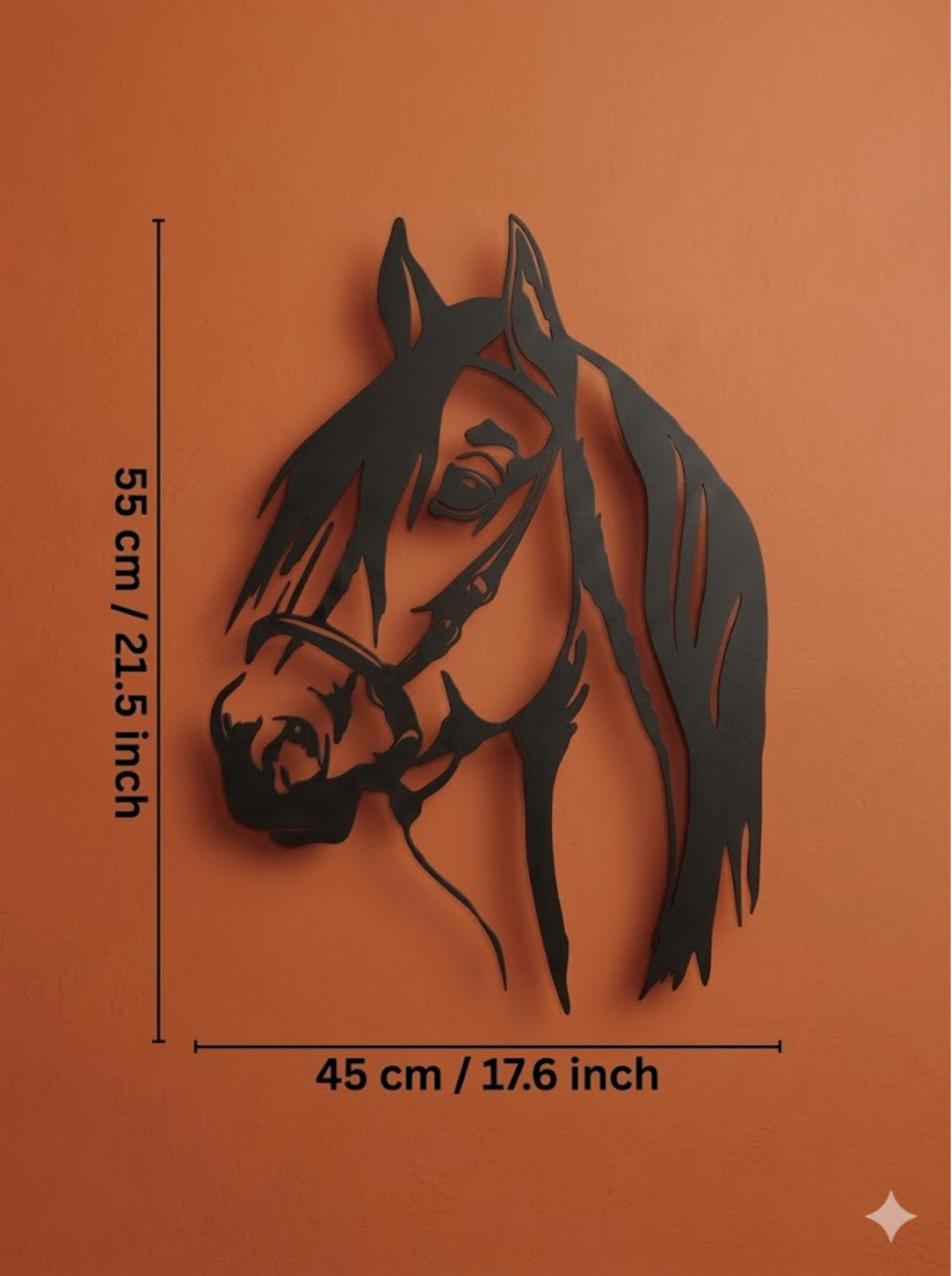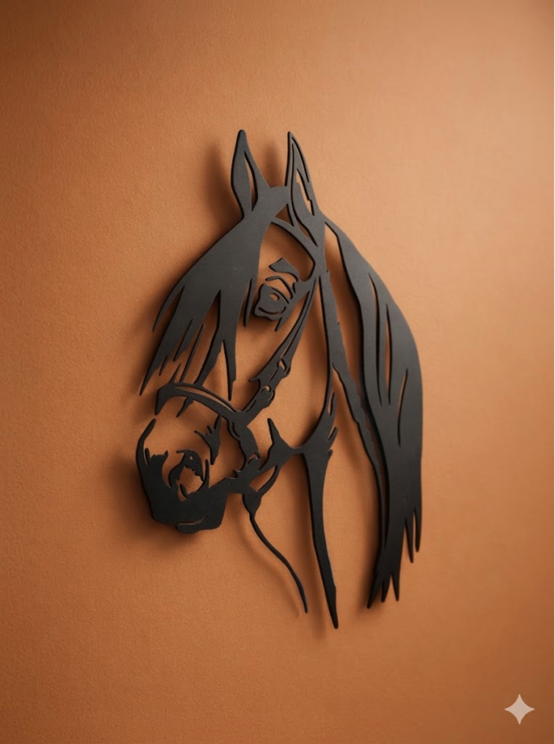 • Elegant 3D Horse Design – Features a bold horse head silhouette with artistic cut-outs that create a stunning three-dimensional visual effect.