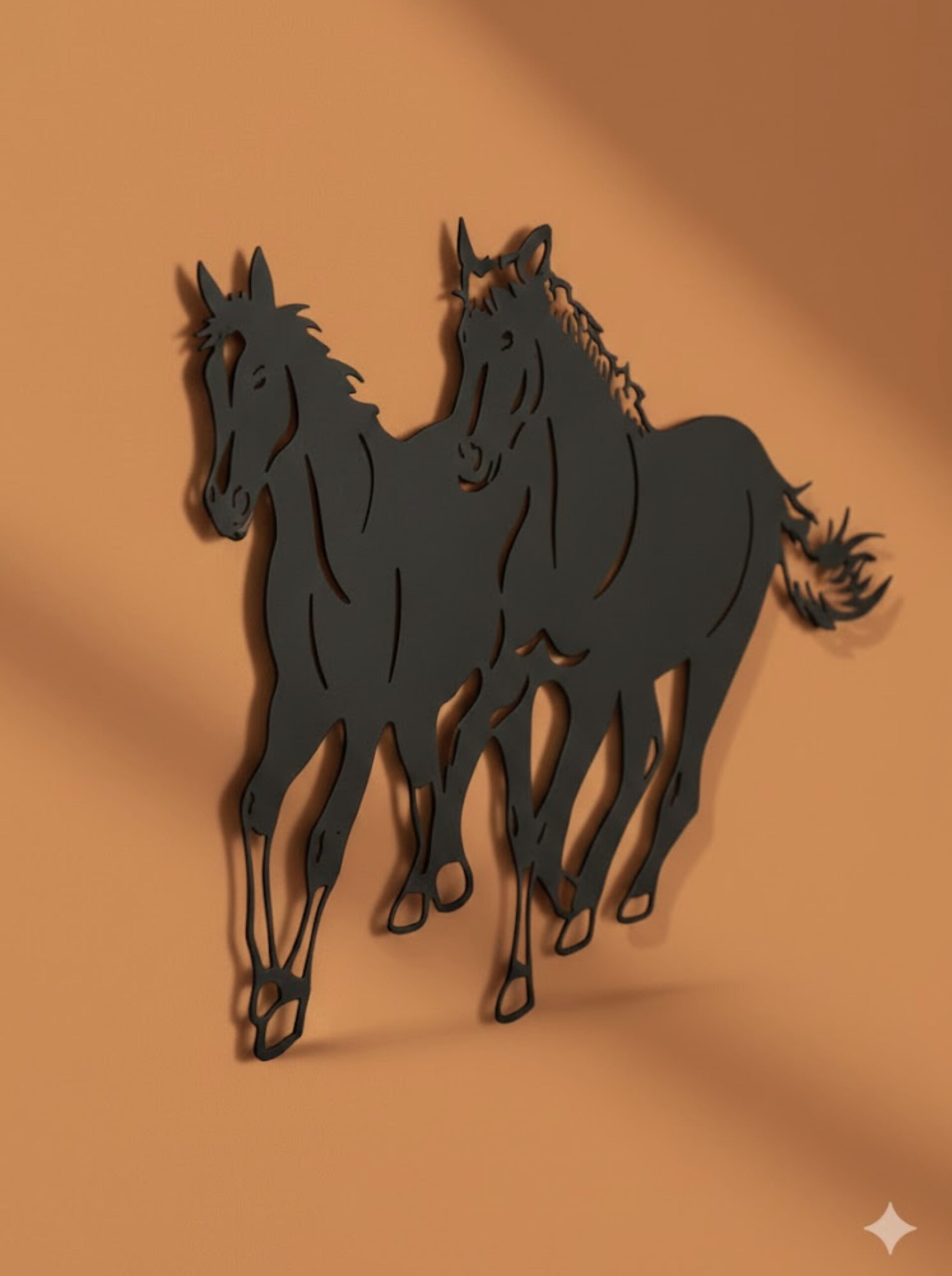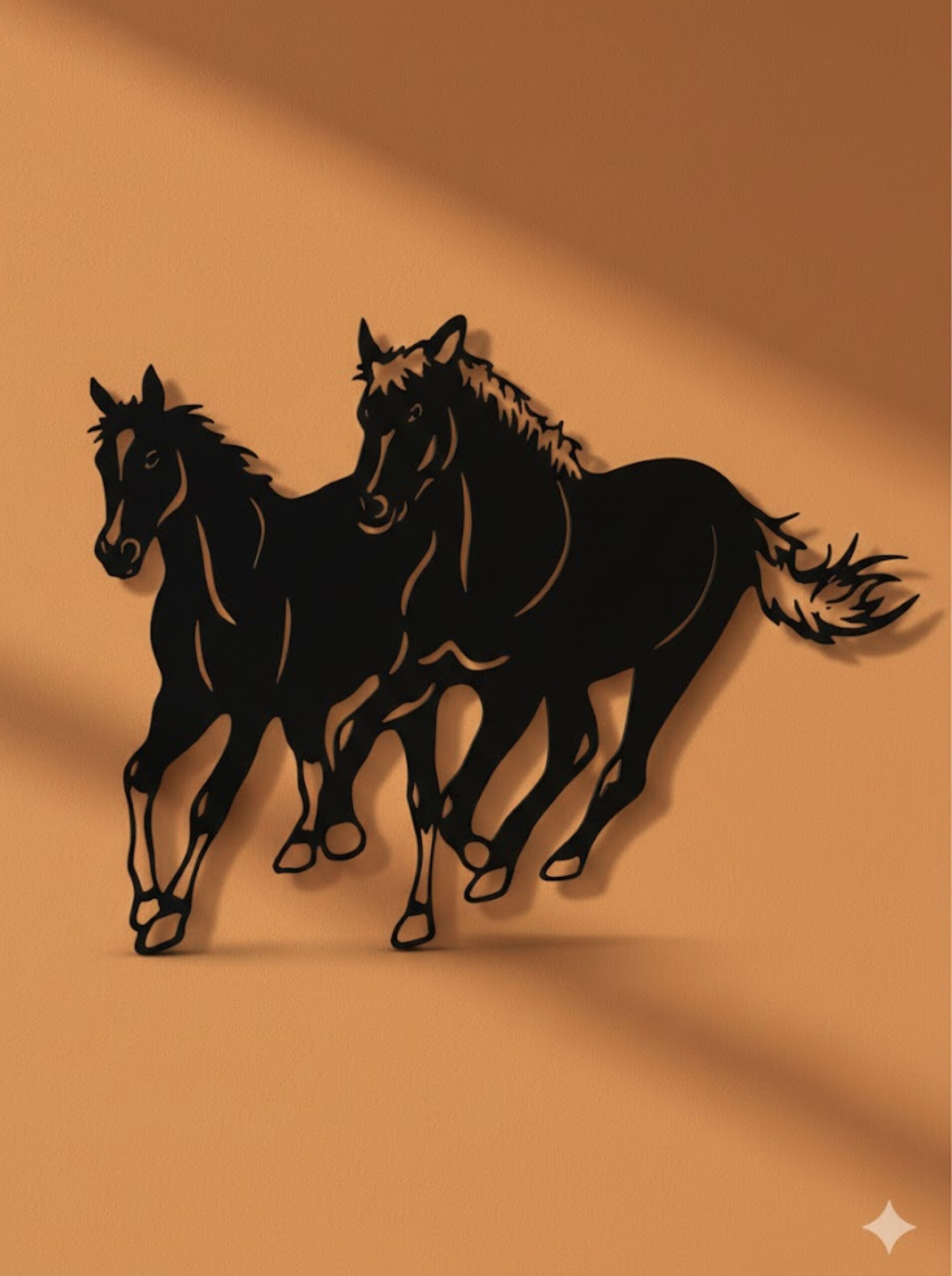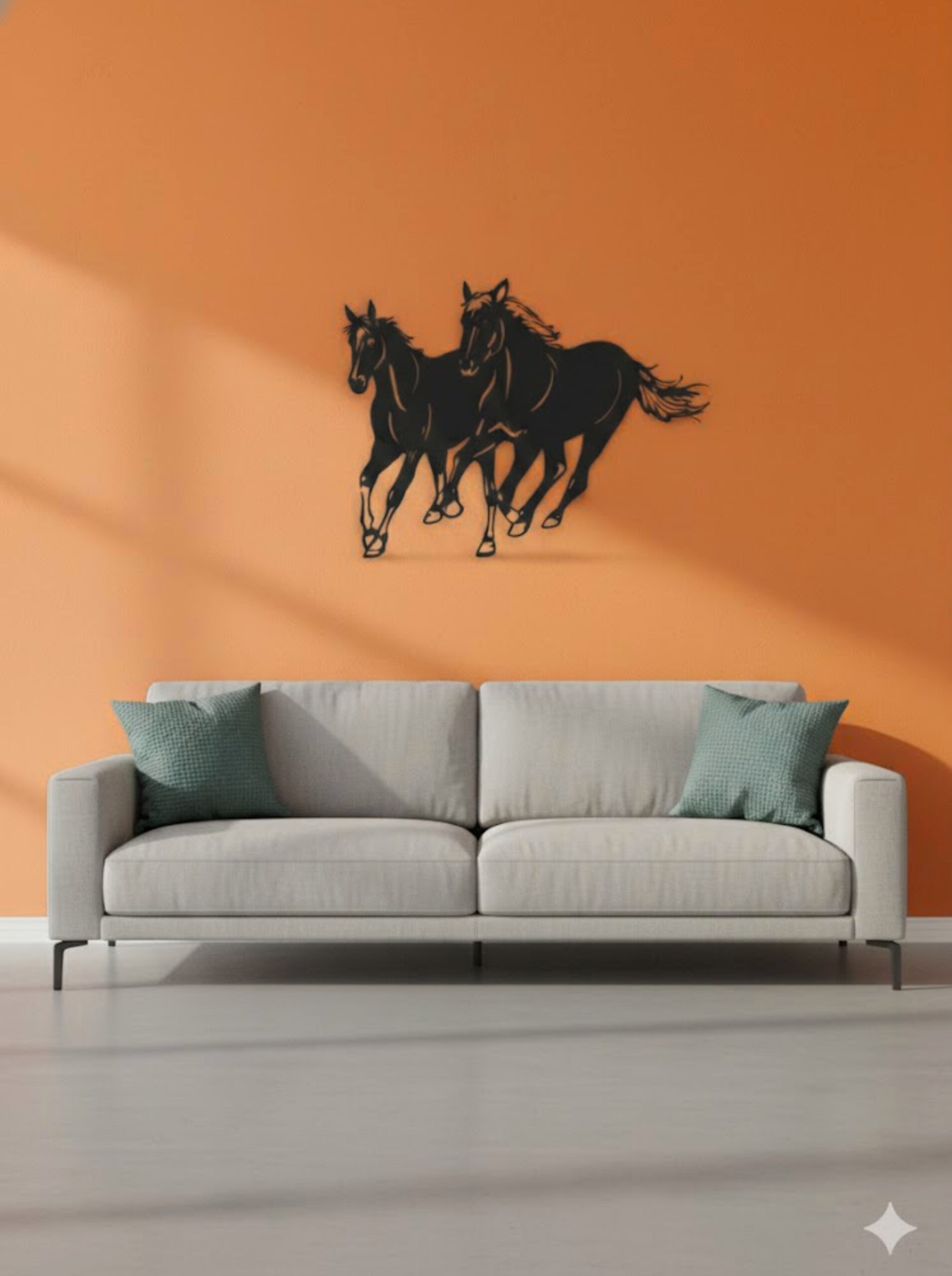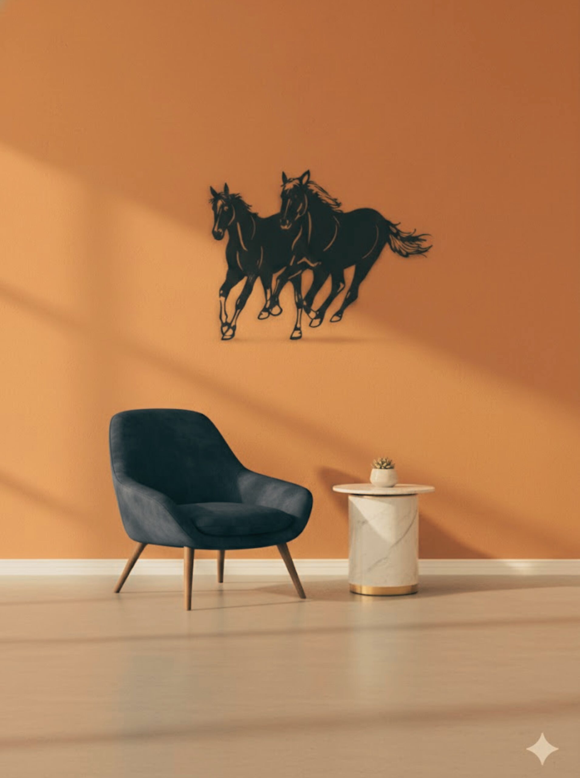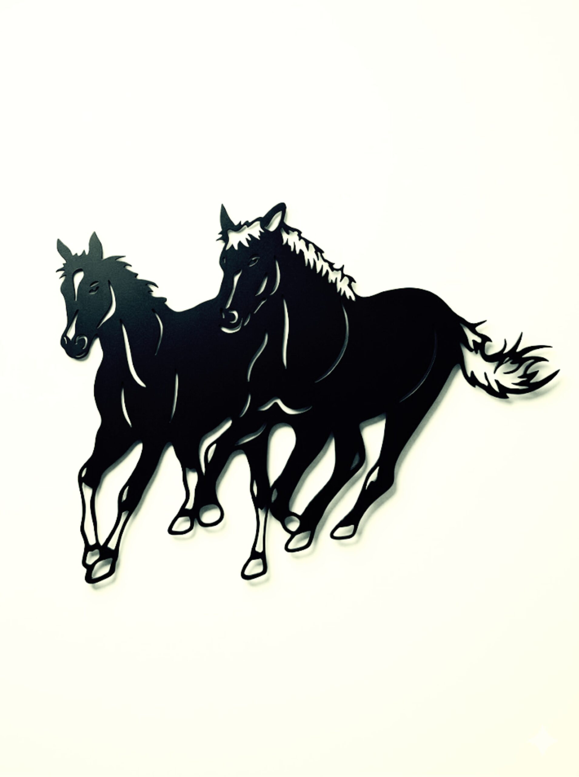 Transform your walls with the bold and graceful presence of the Running Horses Metal Wall Art (Black). This striking 3D metal décor captures the power and elegance of two galloping horses in motion — symbolizing freedom, strength, energy, and determination.