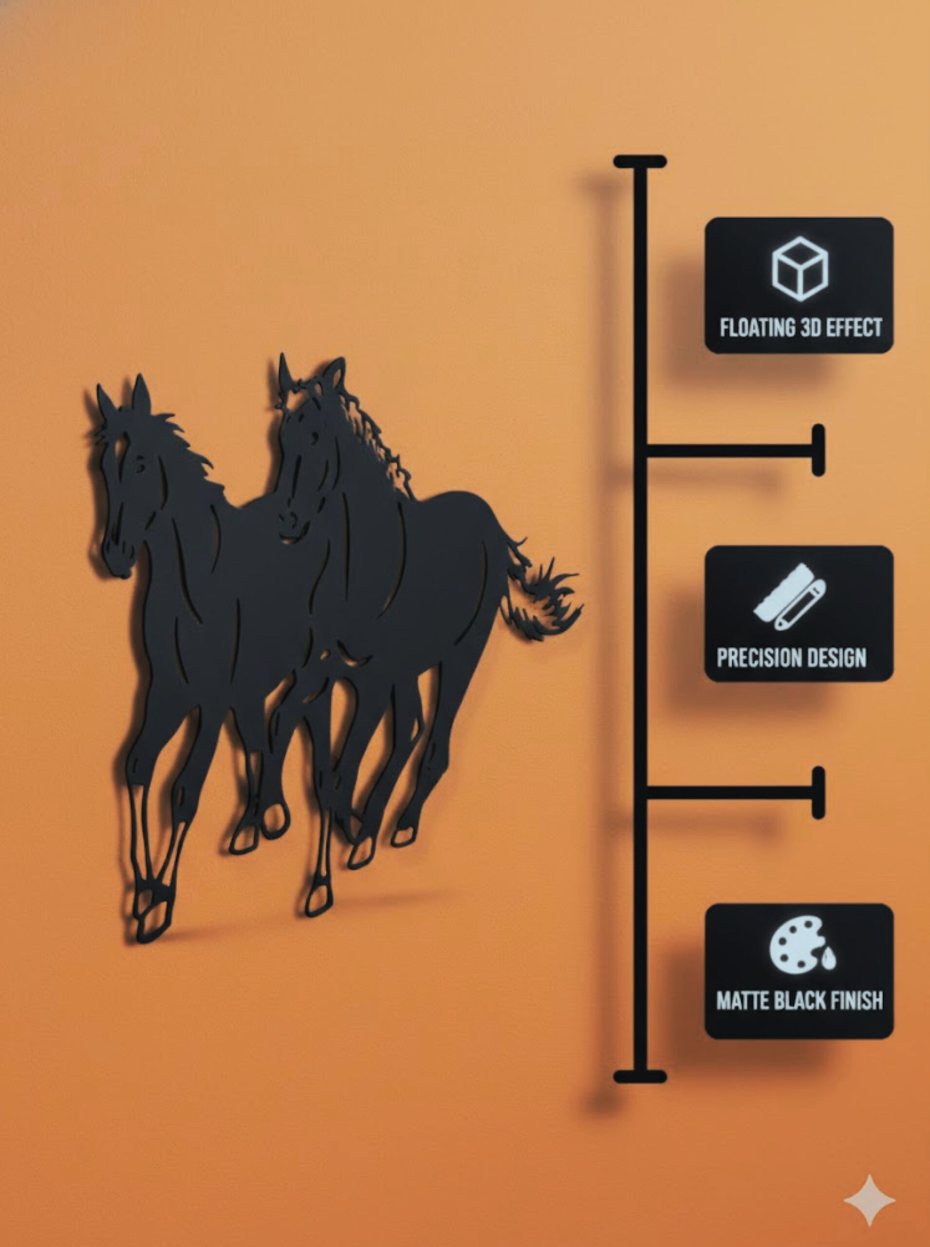 Symbol of Freedom & Strength: The running horse design represents power, speed, determination, and independence — adding inspiration and character to any space.