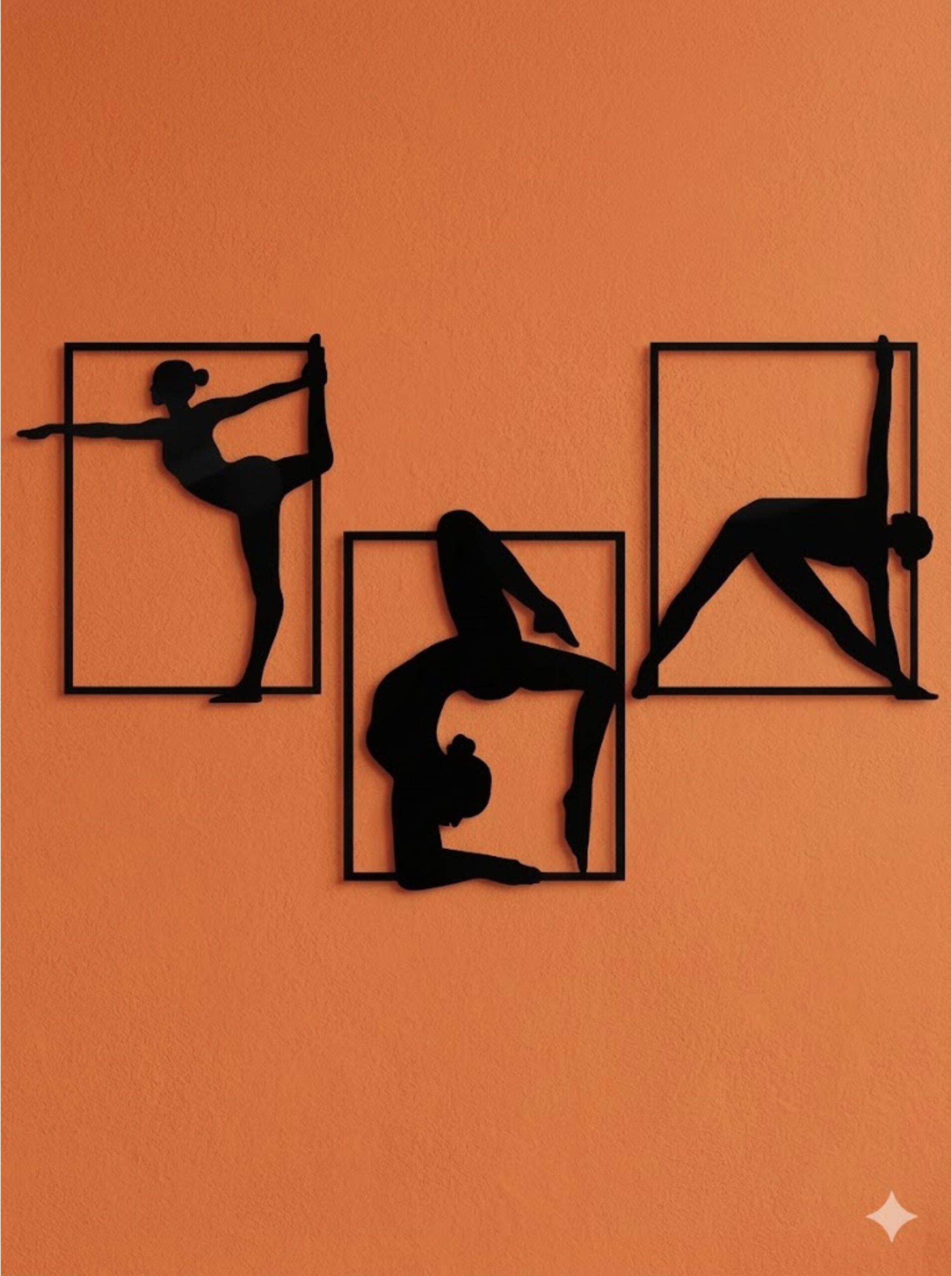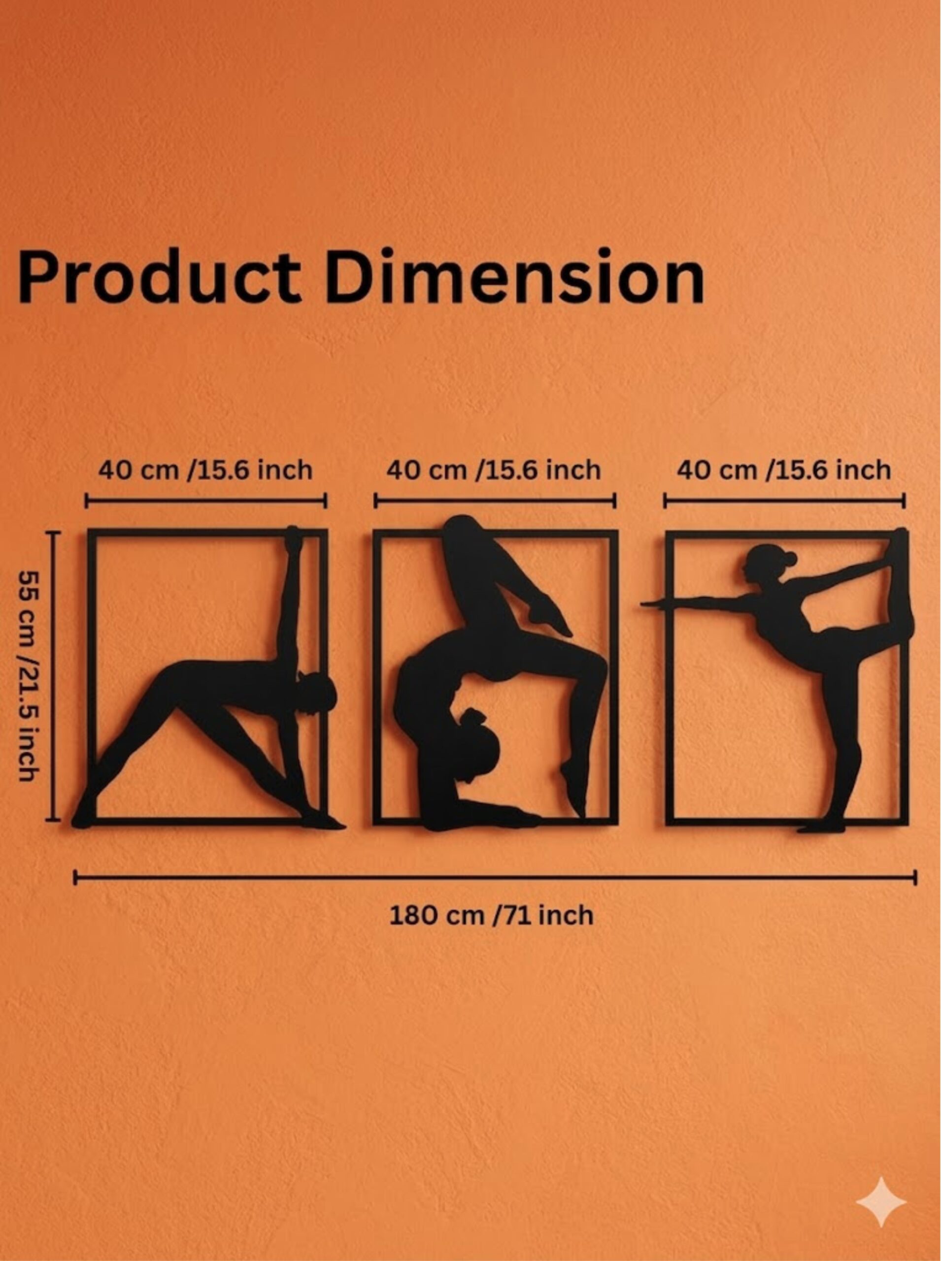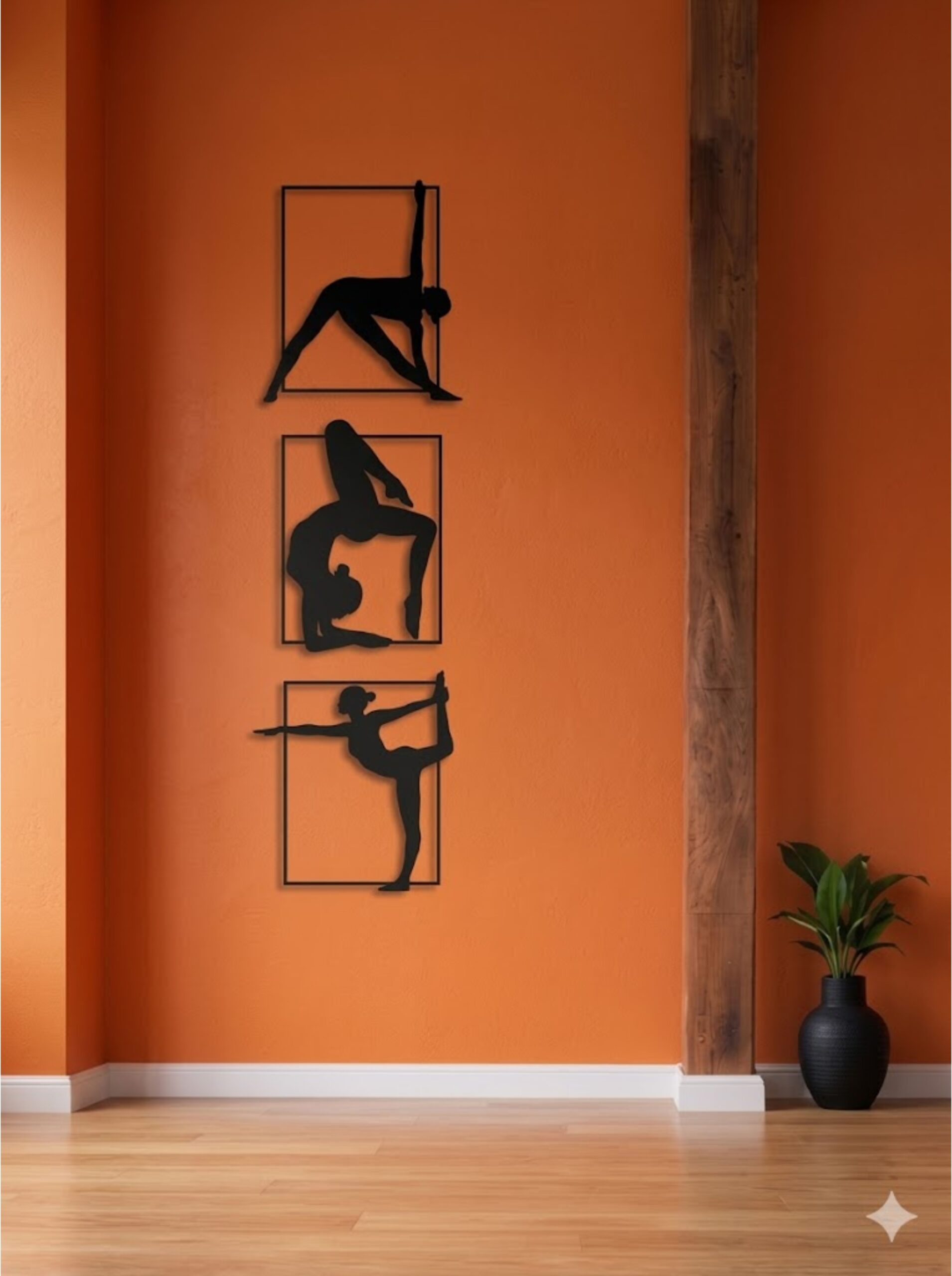 Elevate your surroundings with a perfect blend of art, mindfulness, and modern design through this Yoga Pose 3-Panel Metal Wall Art. Designed to inspire calmness and balance, this elegant wall décor showcases a graceful yoga silhouette distributed across three perfectly aligned panels. The composition symbolizes harmony of mind, body, and space—making it more than just decoration, but a statement of lifestyle and inner peace.
