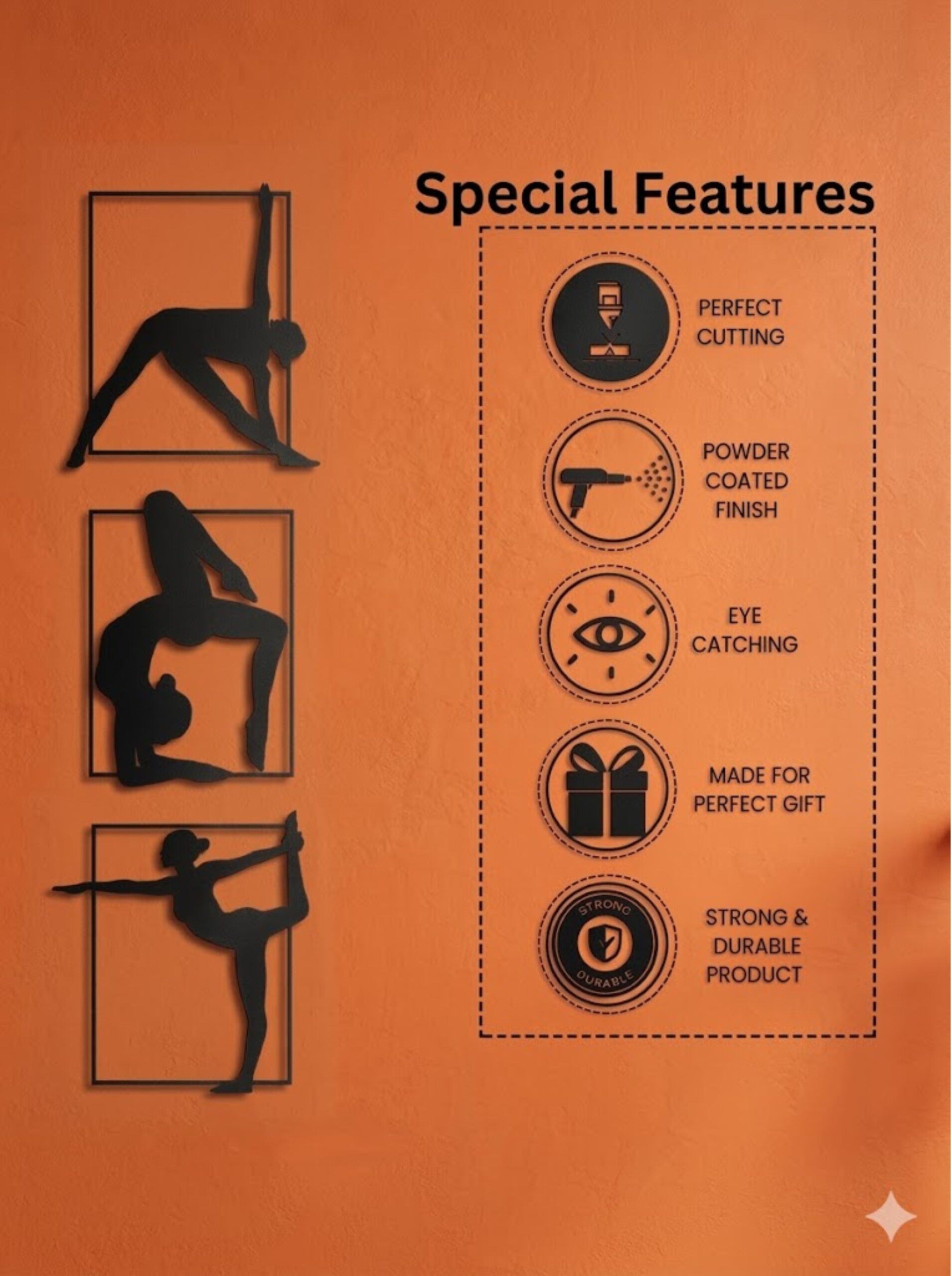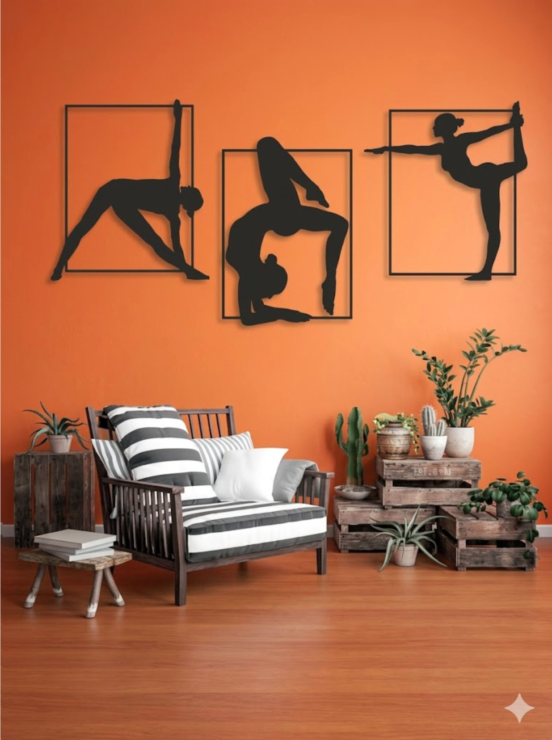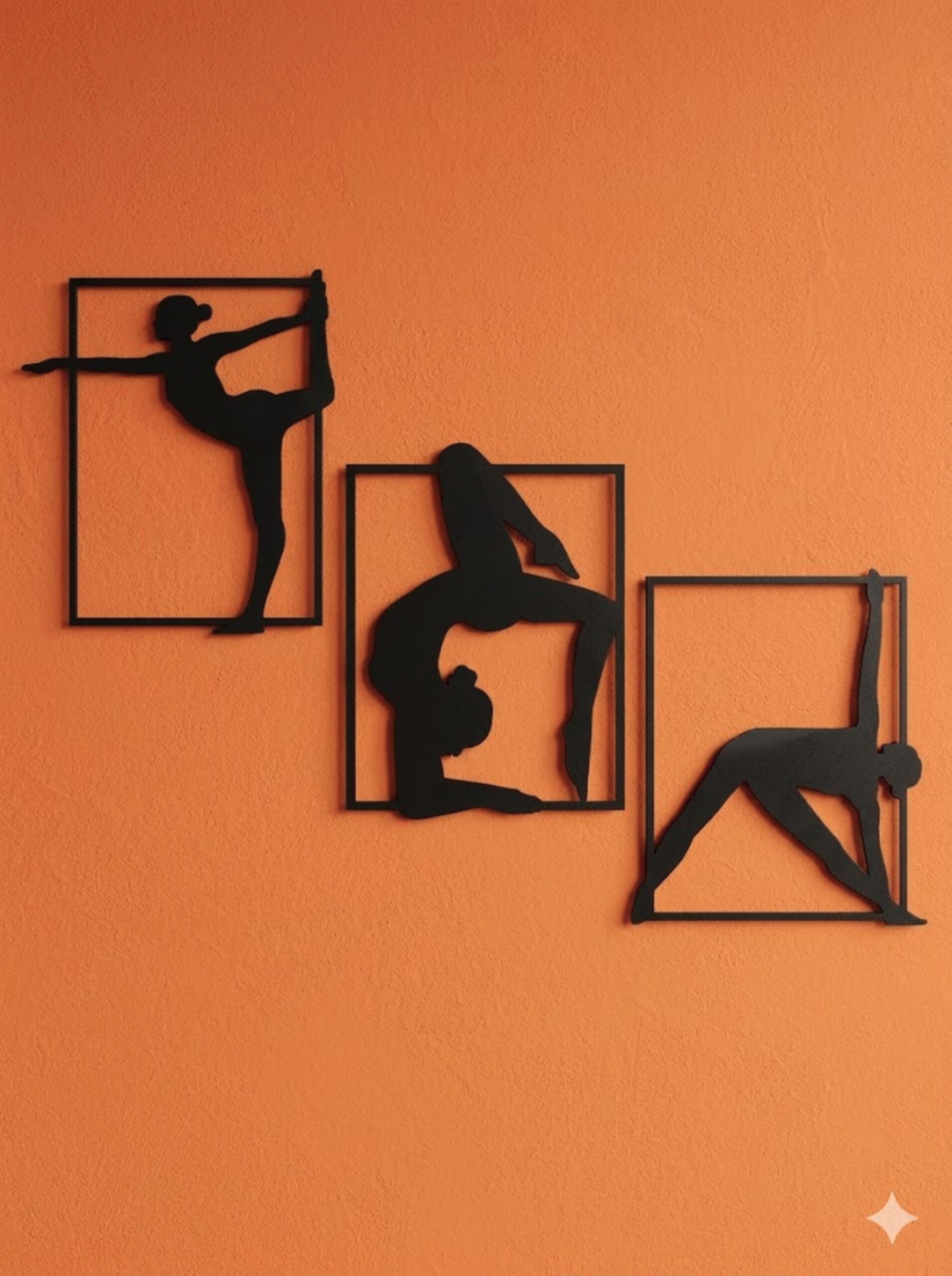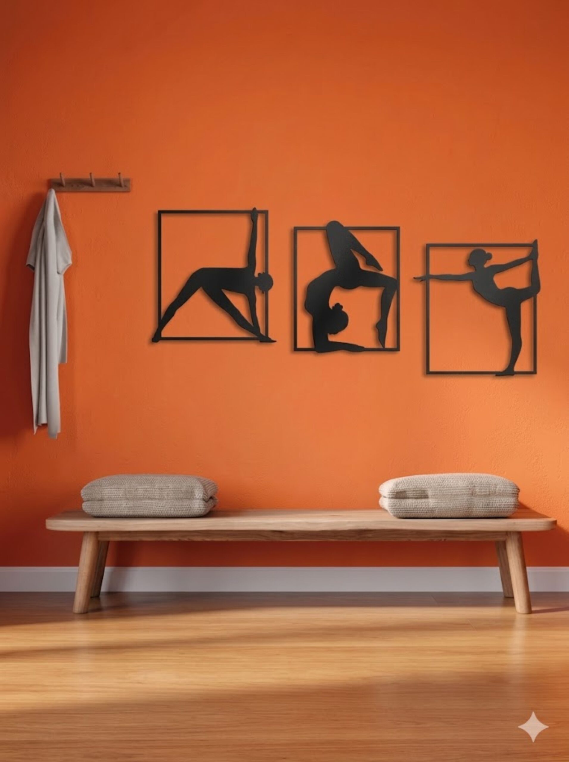 Elevate your surroundings with a perfect blend of art, mindfulness, and modern design through this Yoga Pose 3-Panel Metal Wall Art. Designed to inspire calmness and balance, this elegant wall décor showcases a graceful yoga silhouette distributed across three perfectly aligned panels. The composition symbolizes harmony of mind, body, and space—making it more than just decoration, but a statement of lifestyle and inner peace.